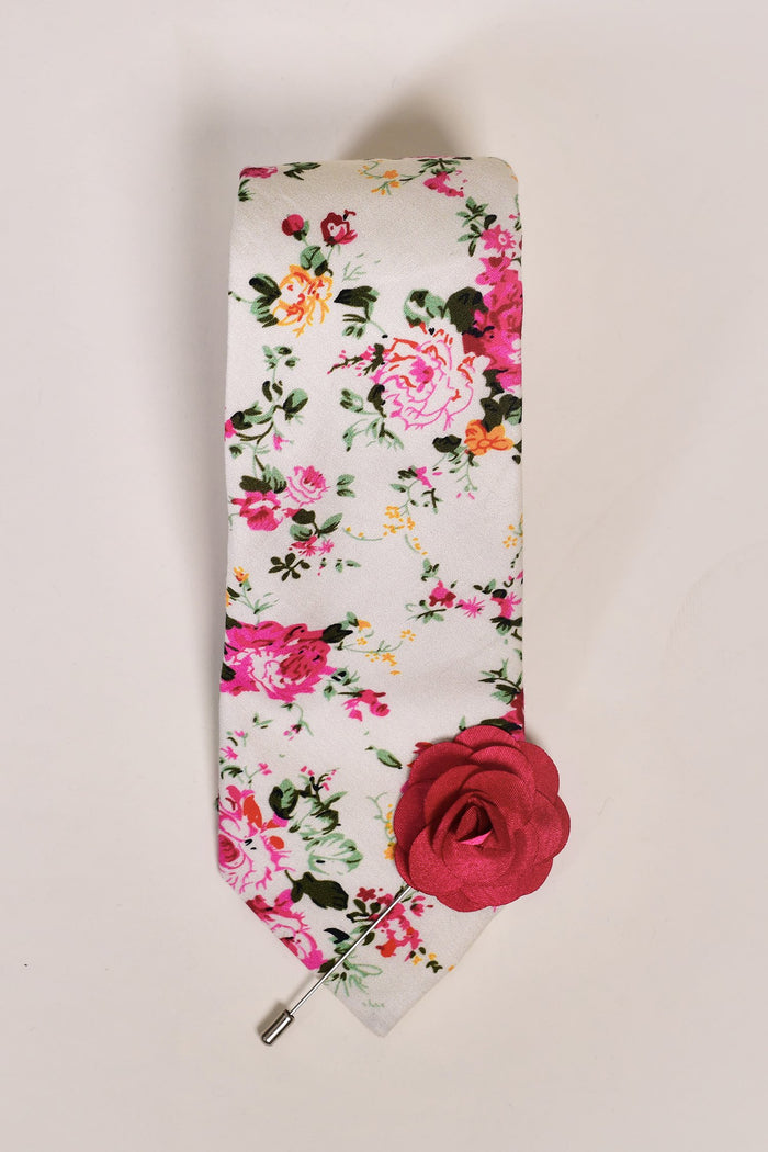 Floral ties are an absolute must for tying the knot in the sun, and this is as quintessentially British summer as it gets. It stands out for the right reasons, while the pink lapel pin adds another level of individuality to your look.
