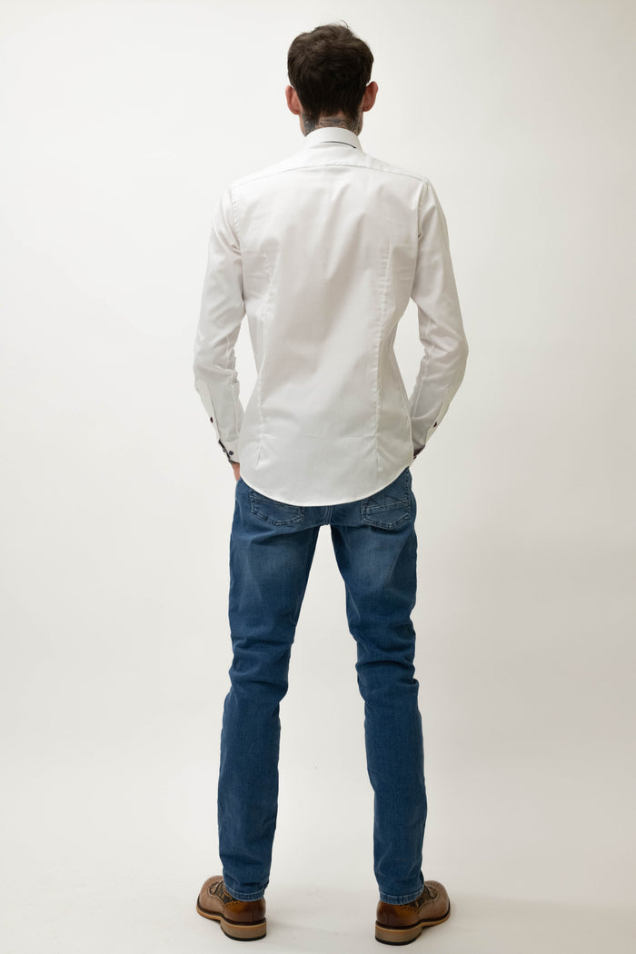 If you're after a White shirt that offers a little something extra, then the Guide London White Shirt with Multi Coloured Buttons is a great option. The statement buttons and bold floral print contrast on the collar and sleeve turn up, elevates this White shirt from the basics.
