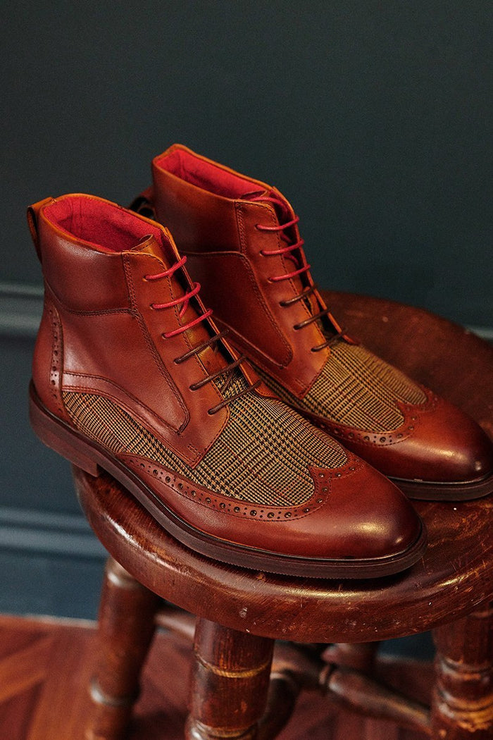The rich brown colour of the Justin Reece Douglas Boots will add sartorial elements to any outfit, perfect for the style-conscious man and complimented with tweed panels.
