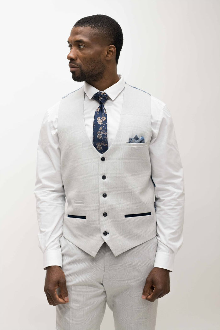 Waistcoats are an easily overlooked item when it comes to formal wear since they spend most of the time hidden under a blazer, but when you get one as stunning as the Marc Darcy Bromley Stone Waistcoat you’ll never want to cover it again. A lightweight stone front beset with a fine navy check, coupled with a blue and silver paisley lining makes this piece an extreme stand out, perfect for when you just want something to add an element of formality to an outfit rather than opting for a full 3-piece suit.