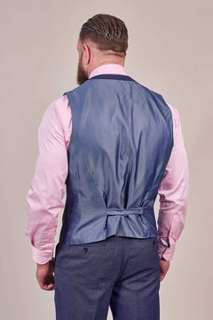 Simple, smooth and statement, the Skopes Harcourt three-piece navy suit brings a refined quality to your special occasion. With a double-pocket blazer, seamed trousers and both a scoop-front and V-shaped waistcoat available, our blue tailored suit matches perfectly with mustard and brown accessories.