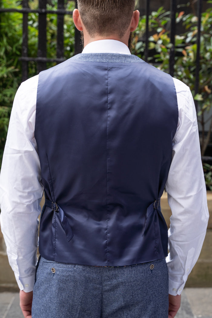 The Skopes Jude Sky Blue Herringbone waistcoat is perfect for adding a pop of light colour to your outfits no matter the occasion. Wear as a full 3-piece with the coordinating trousers and blazer, or swap in as a contrasting piece with another 2-piece. Take it down a notch by ditching the blazer and rolling up the sleeves.