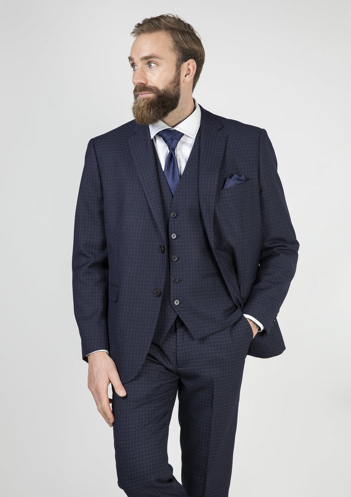 A single-breasted blazer fit for royalty, its distinctive navy and grey check pattern and slant pocket flaps are the perfect combo for anyone looking for a traditional wedding look. If a full 3-piece isn’t quite what you’re looking for, why not pair this blazer with a pink formal shirt and some dark wash denim jeans for a very interesting smart casual look.