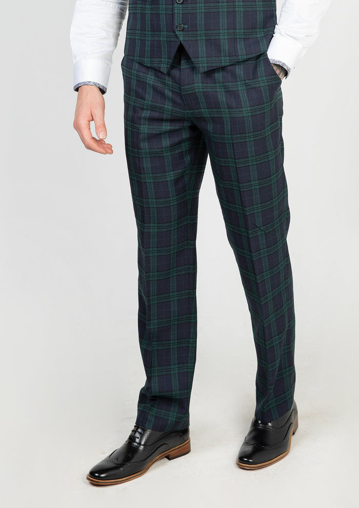 These flat-front trousers feature charcoal and green pattern, and side slant pockets, fit for any occasion. When worn with brown brogues and a contrasting tan tweed blazer, these trousers are sure to be the talk of the town.